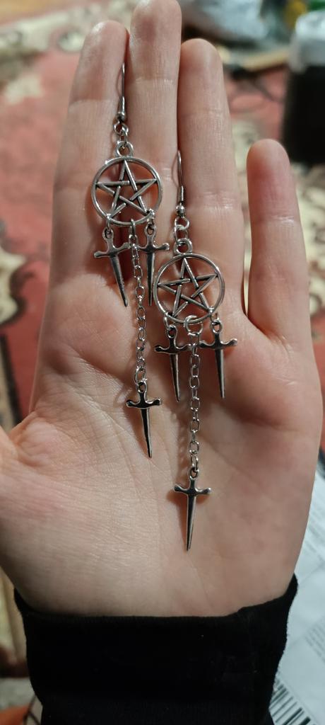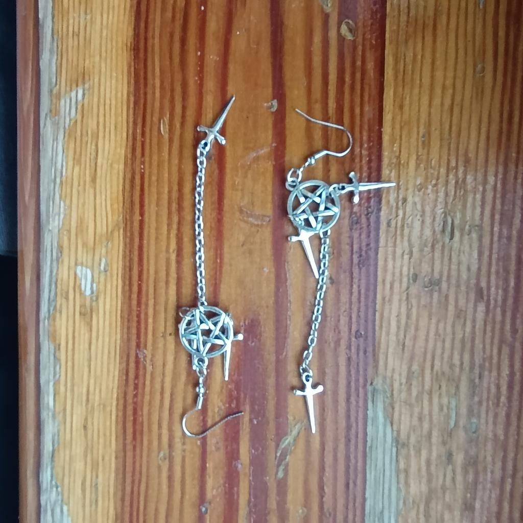 Pentagram Swords Earrings Silver Plated Huggie Hoops Dangle Witchy Jewelry Pagan Wiccan Tarot Gothic Emo Women Gift