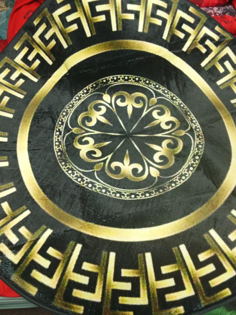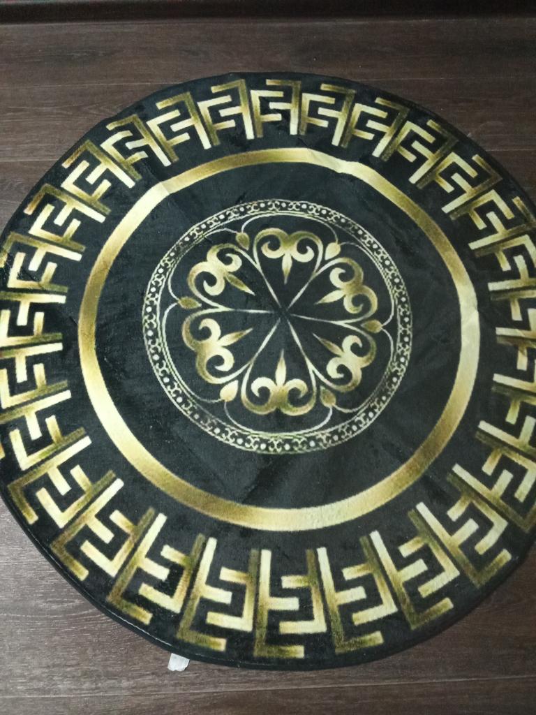 1Pcs Black and Golden Circular Pattern Round Area Rug Indoor Non-Slip Washable Fiber Carpet Soft Comfortable Mat For Bedroom Living Room
