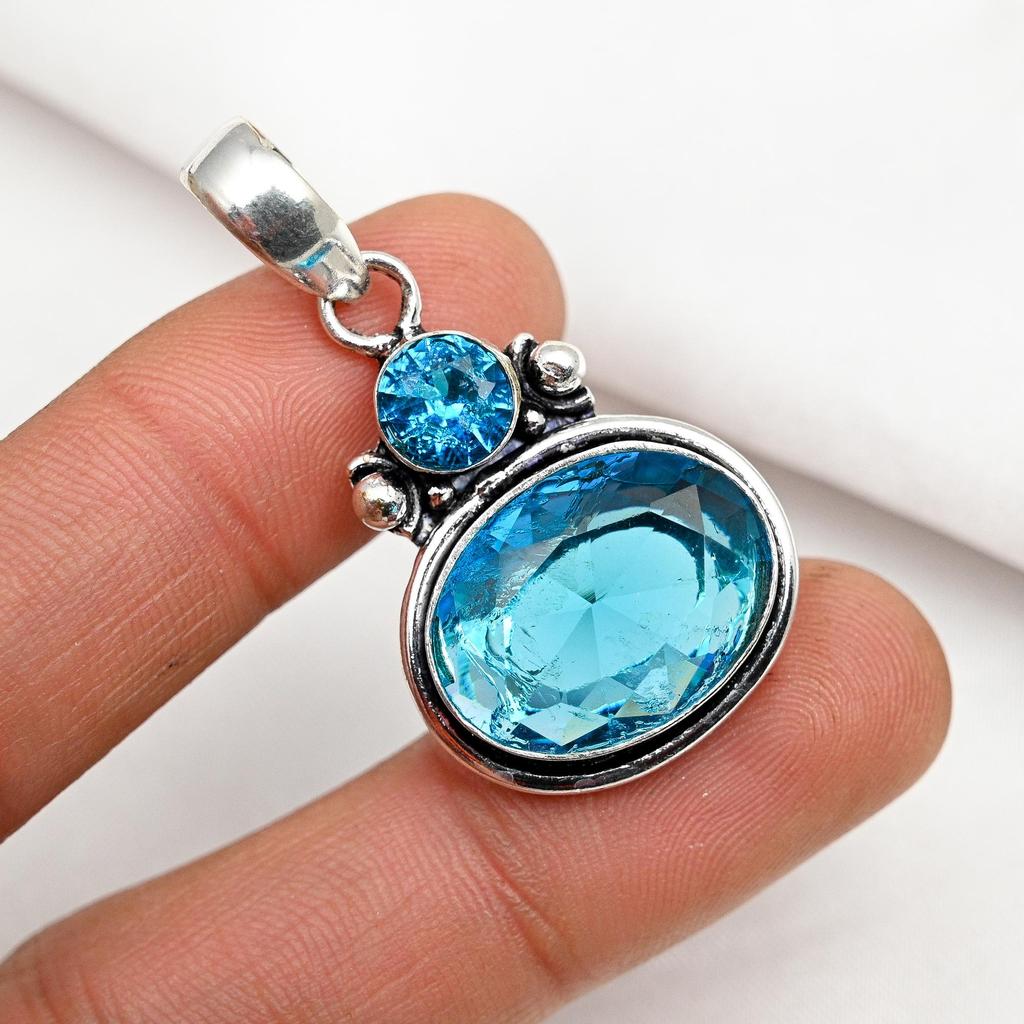 Blue Topaz Pendant Gemstone Jewelry, 925 Solid Sterling Silver Pendant, Handmade Jewelry Birthstone Pendant, Gift For Him