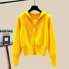 Autumn Winter Long Sleeved Double Zipper Soft Cardigan Sweater With Hat Design Top Spring Fashion Hooded Sweater Jacket Women