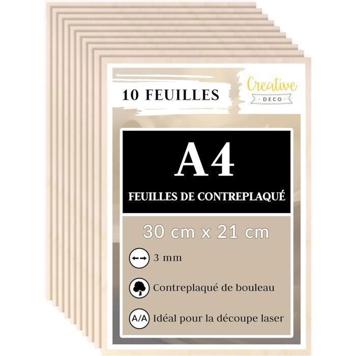 Panneau de contreplaqué - Creative Deco - A4 - 10 planches - 3mm - Bois Bouleau - Découpe Laser