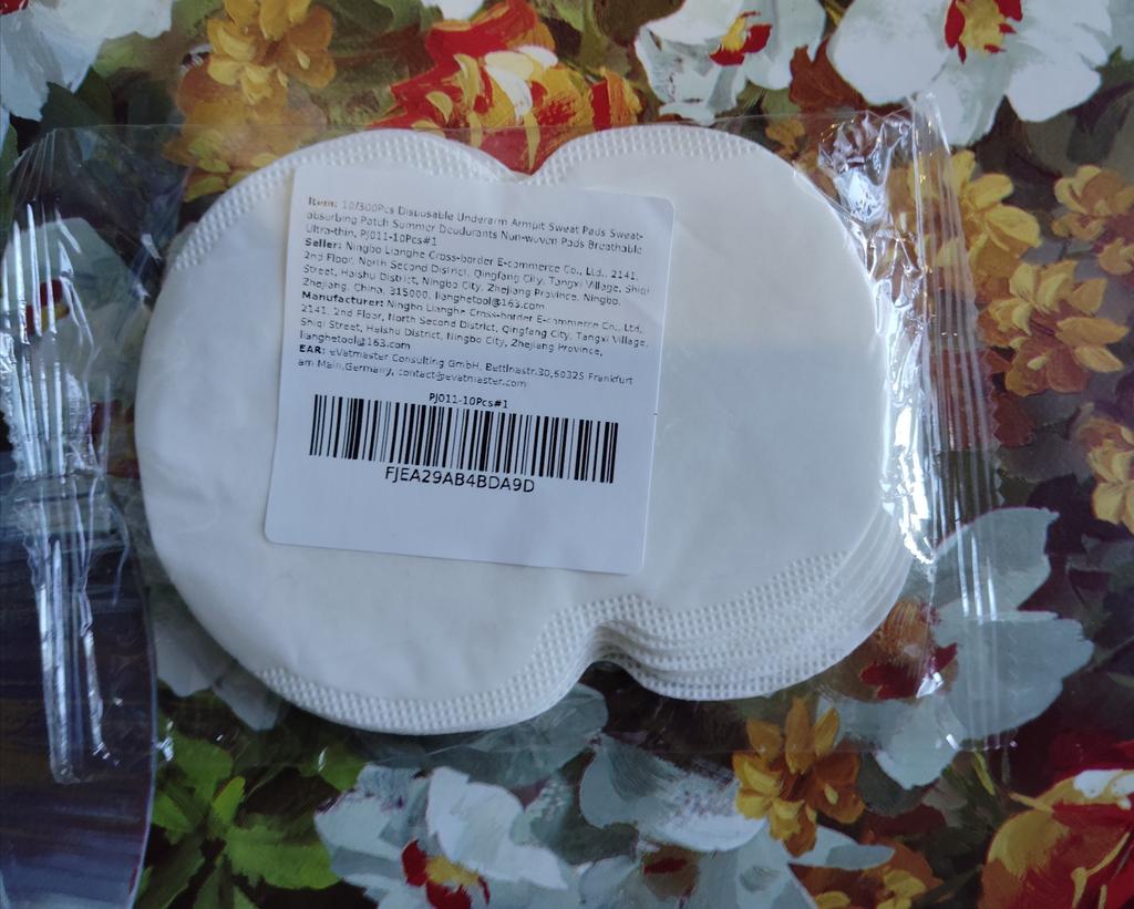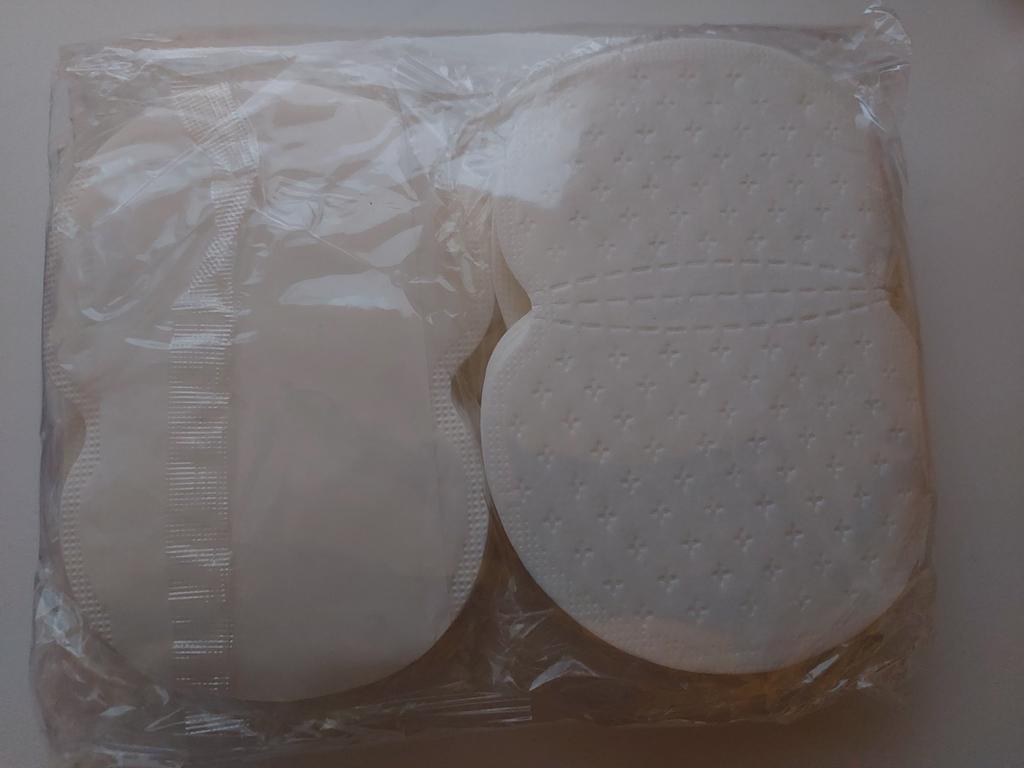Underarm pads to protect clothes in the underarm area from sweat have an adhesive layer and are very similar in quality to daily panty liners. There are 10 pieces in a package. A necessary item in the hot summer time. Thank you.