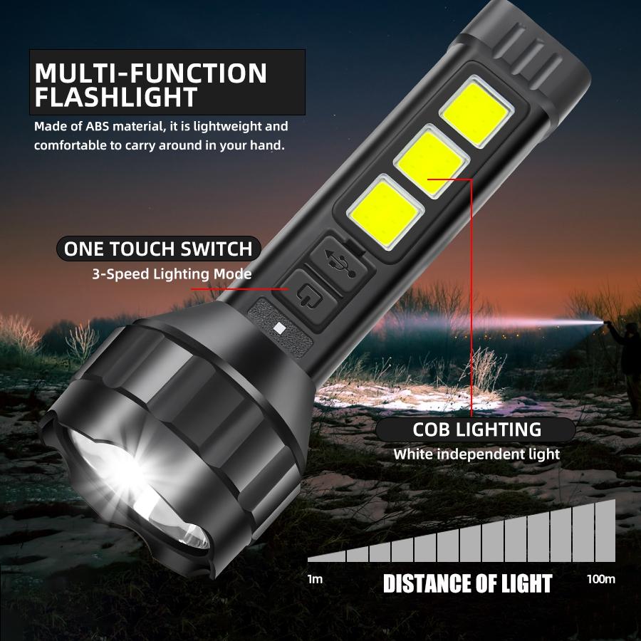High Power LED Flashlight Rechargeable Tactical Zoom Torch Lamp with COB Side Light Waterproof Outdoor Camping Lamp Hunting