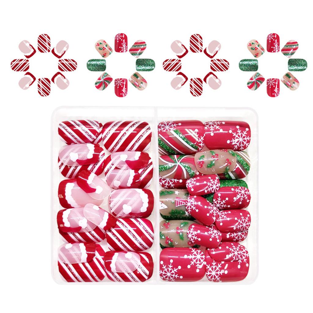 Christmas Full Cover Stick On Nails Lines Press On Nails Short Square False Nails Glittering Artificial Nails for Winter