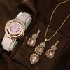 Women Quartz Watch Ring Necklace Earring Rhinestone Wristwatch Watches
