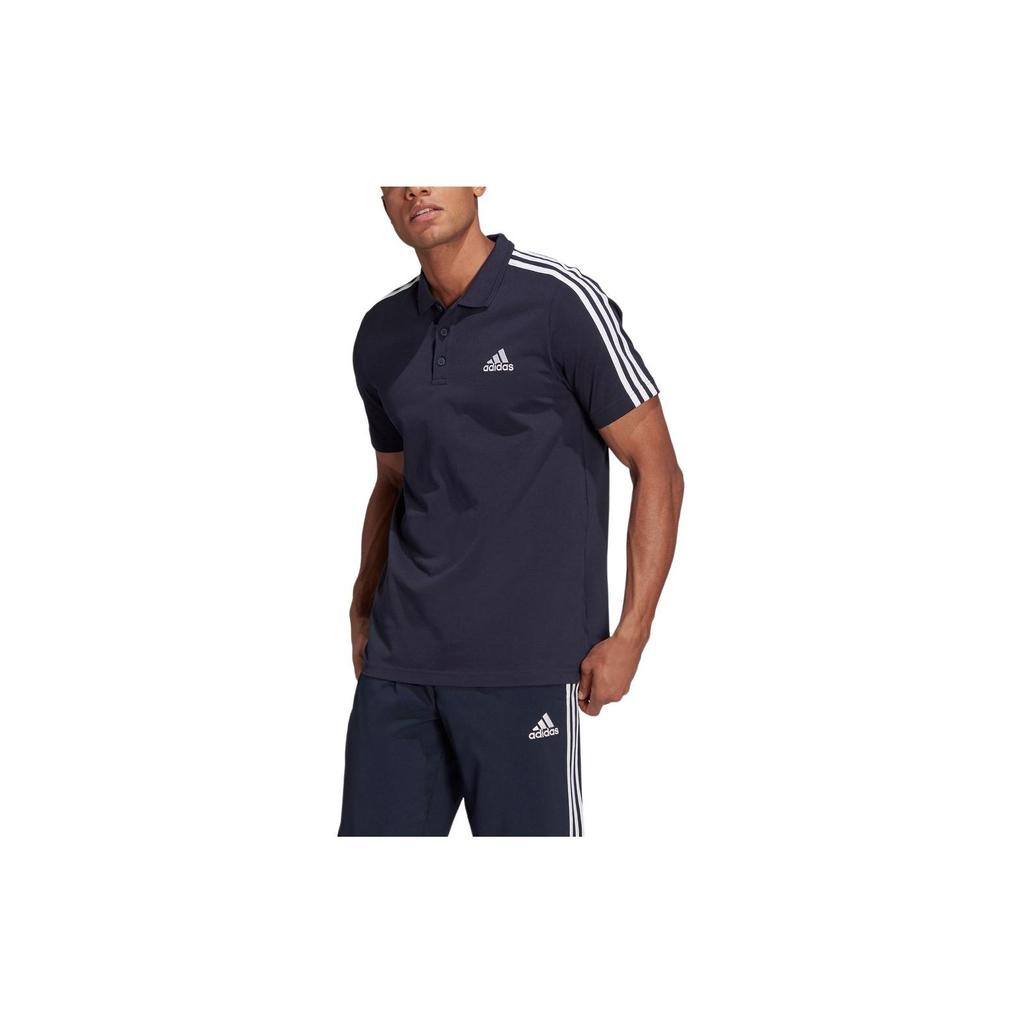 Adidas Logo Print Striped Short Sleeve Polo Shirt Men Polo Shirts Legendary-Ink-Blue GK9100
