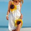 Beach Wear Mini Dress Sunflower Print Casual Modern Dress Sleeveless Loose Fit Outdoor Daily Summer