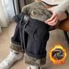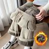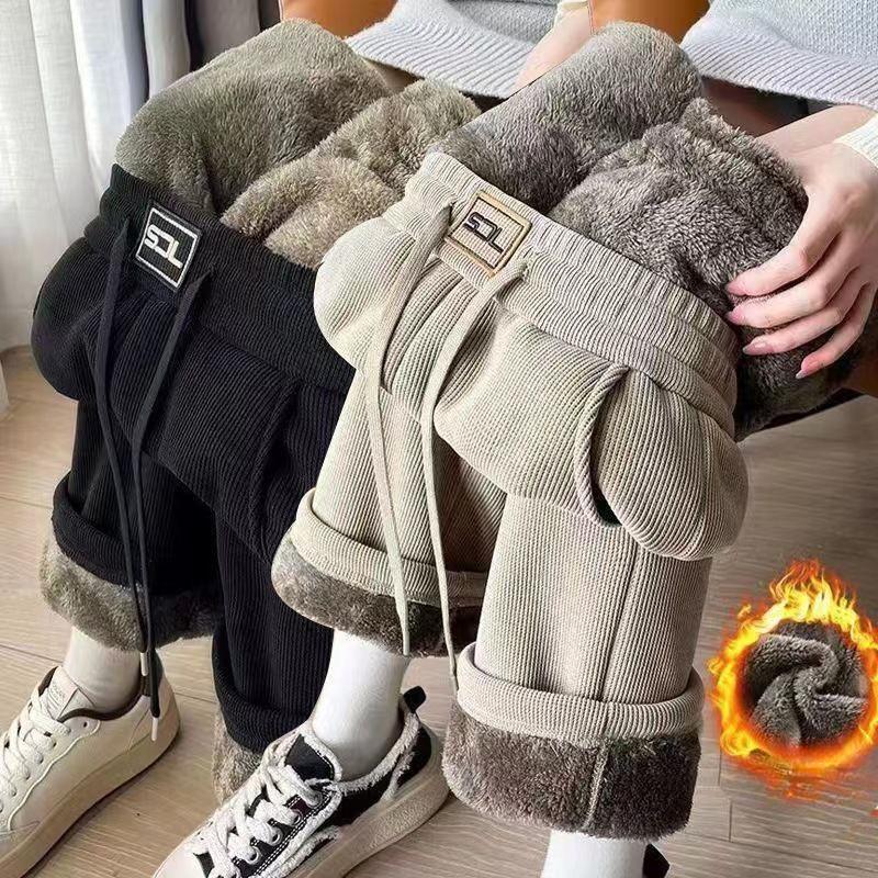 Autumn Winter Korean Fashion Fleece Women Thicken Pants Corduroy Solid Color Drawstring Elastic Waist Casual Warm Straight Full Trousers