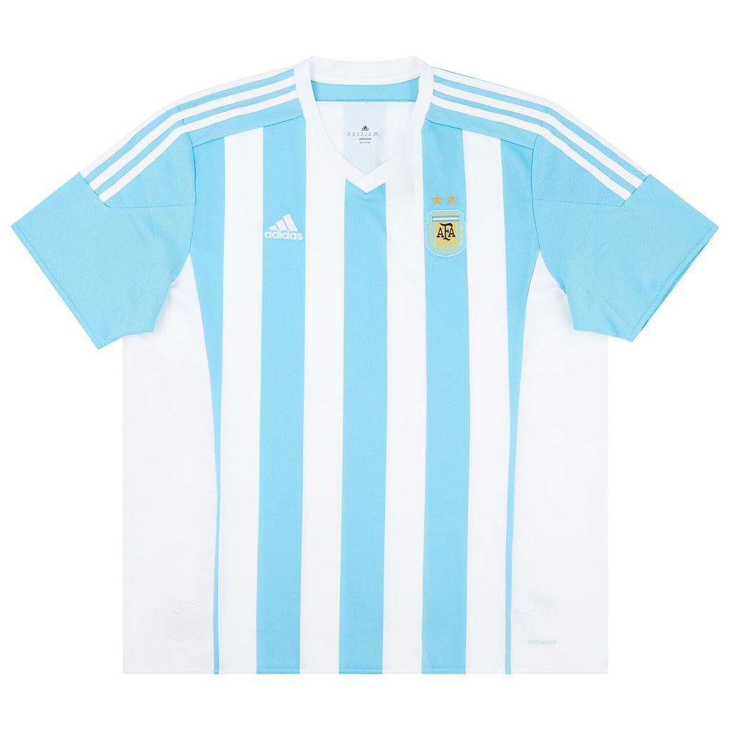 adidas 2015 Argentina Copa America Striped V-Neck Short Sleeve Retro Football Shirt Men Tops Light-Blue AC0326