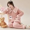 Women's Thickened Loose Size Pajamas Set Flannel Home Wear Cute Sweet Autumn Winter Loungewear Suit Warm Coral Velvet Sleepwear