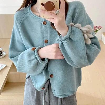 Grey Lapel Loose Fit Cardigan Women's Korean Fashion Button Casual Long Sleeved Knitted Coat Versatile Solid Color Sweater