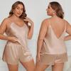 Plus Size Women's New Ice Silk Sexy V Neck Halter Shorts Pajamas Set