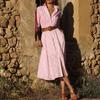 GMXIA Women's Fashion Spring Autumn Solid Color Print Long Sleeve POLO Neck High Waist Casual Dresses