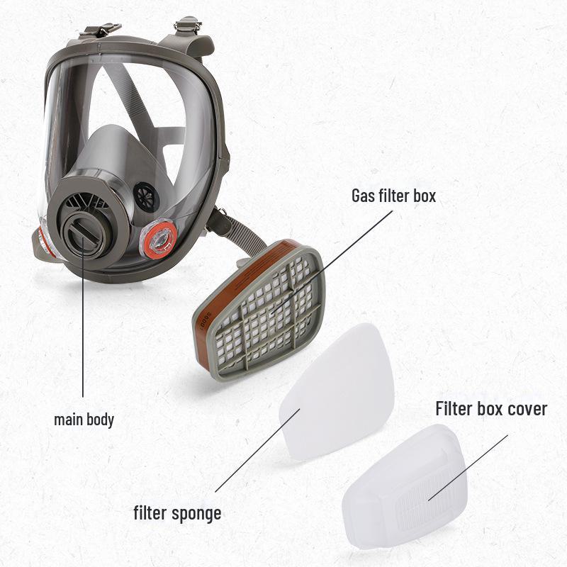 Full Face Silicone Gas Mask for Spray Painting, Chemical Pesticide Protection, Anti-Gas Filter, Wide View.