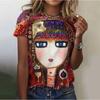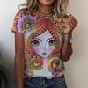 Fashionable Female Portrait 3D Printed Women's Top Harajuku Versatile Round Neck Short Sleeved T-Shirts (women’s