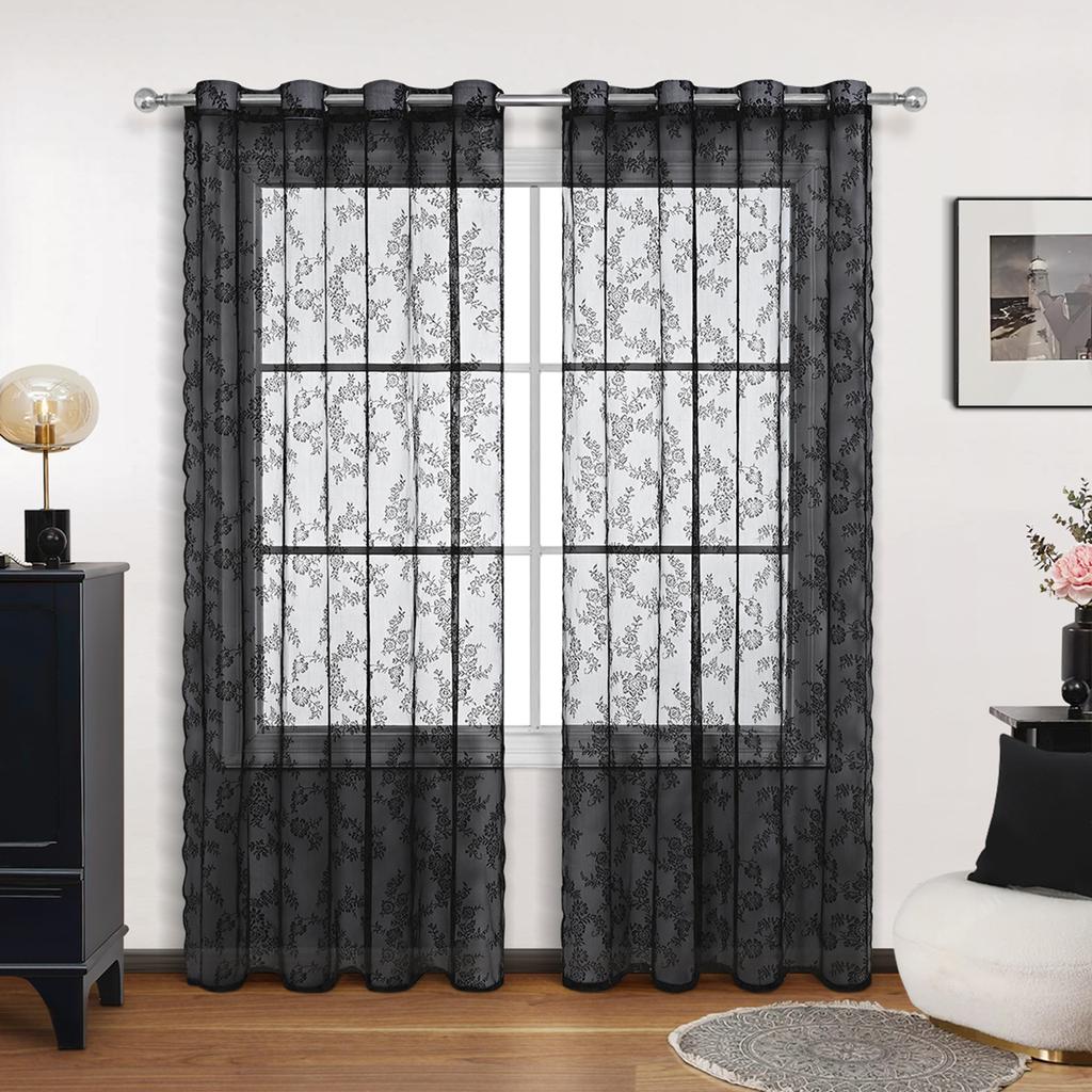1/2 Panels Sheer Curtains Floral Semi Transparent Light Filtering Rod Pocket Voile Drapes Window Curtain for Bedroom Living Room