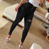 Women Denim Jeans High Waist Button Ripped Hole Slim Pencil Pants Ladies Skinny Jean Trousers