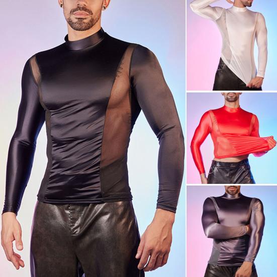 Style: This chic oil glossy shiny t-shirt features a solid color design with a modern twist, making it ideal for pairing with leggings, jeans, or leather pants. The tight-fitting silhouette and mesh detailing on the sides add a touch of allure to your outfit.