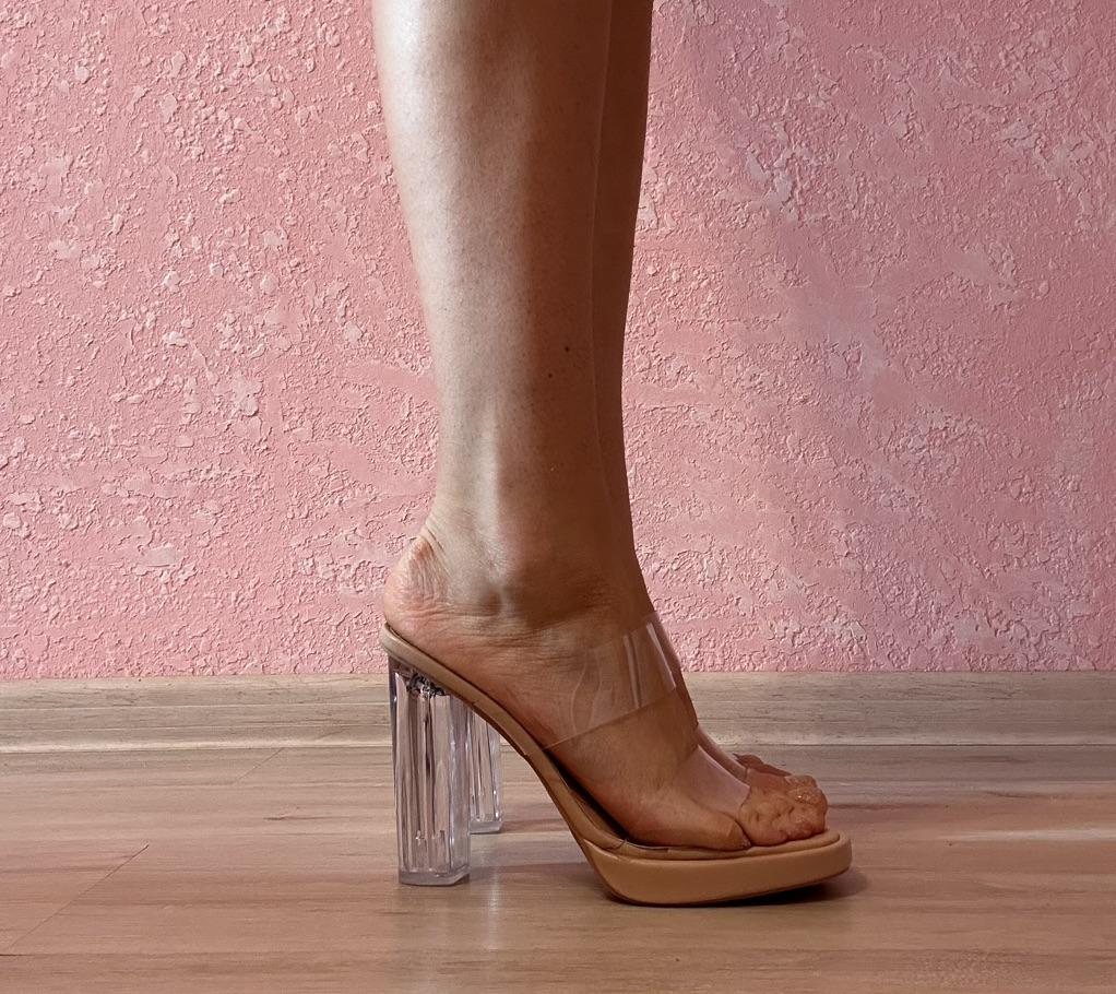 Fashionable sandals with transparent heels ♥️ I have several of these models. This model has the highest heel It's quite stable. You can create many different looks with them. They are perfect for summer time do not slip Wearing them barefoot is a pleasure Transparent silicone straps are not felt, such shoes will not rub My foot is 23 cm, size 36 fits I recommend ⚡️🔥