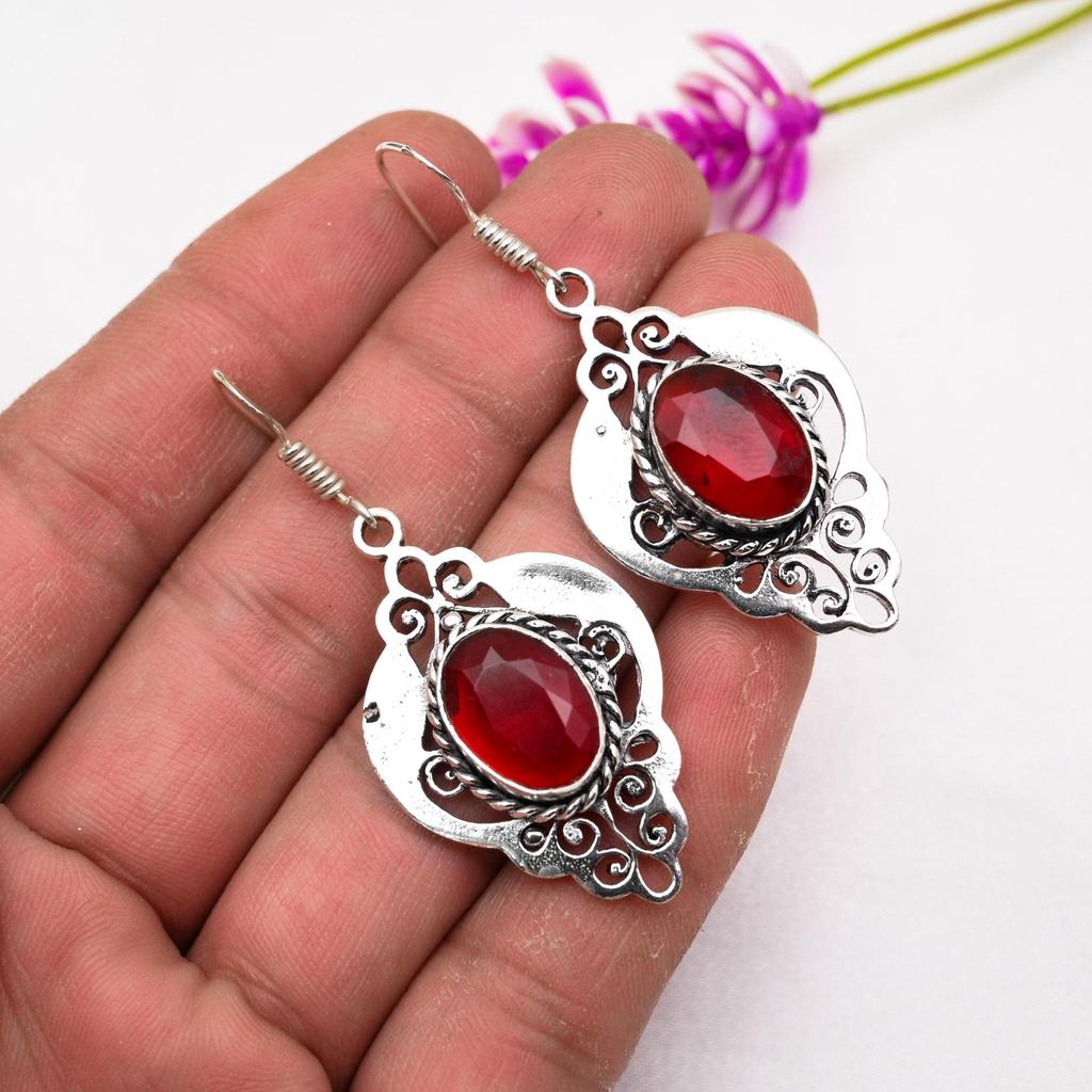 Ruby Earrings Gemstone Jewelry, 925 Solid Sterling Silver Handmade Earrings, Latest Design Jewelry