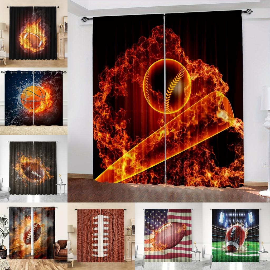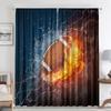 2 Panels Sports Curtains Rod Pocket Abstract Flame Basketball Theme Wall Decor Teens Bedroom Men Cool 3D Ball Art Printed Drapes
