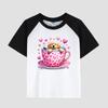 Children's Short Sleeve Cotton T-Shirt with Floral Print, Round Neck, Girls' Casual Fashion Top for Summer