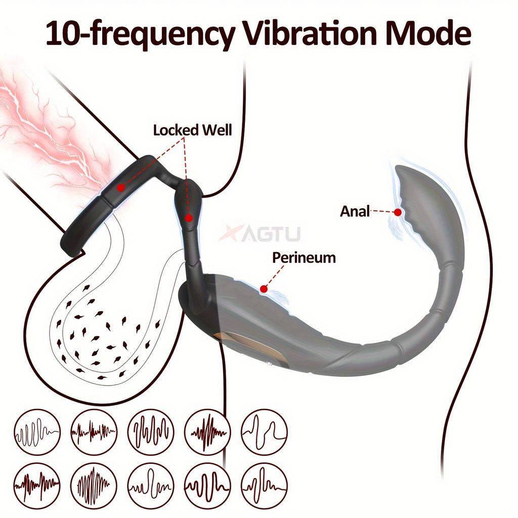 Prostate Massager Sperm Lock Ring 10 Frequency Vibration Mode Scorpion Tail Anal Plug, Suitable for Men and Couples Adult Products Sex Toys Penis Ring