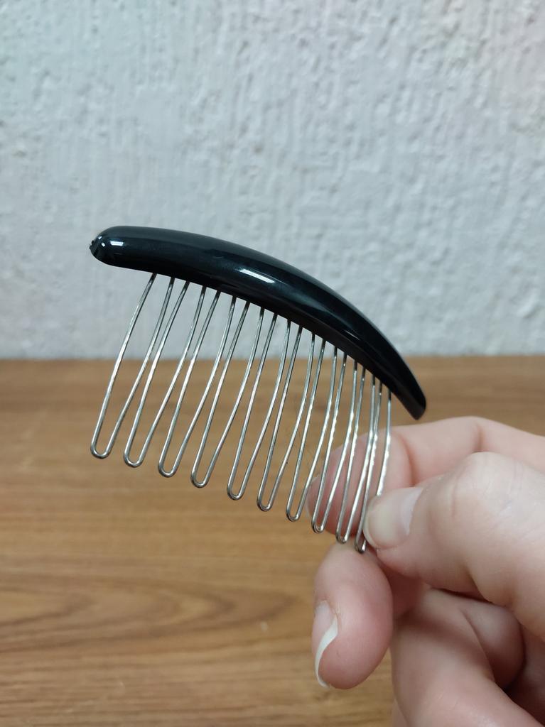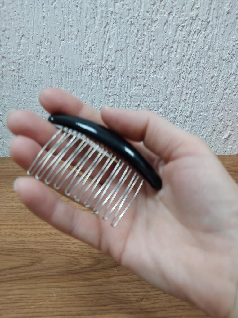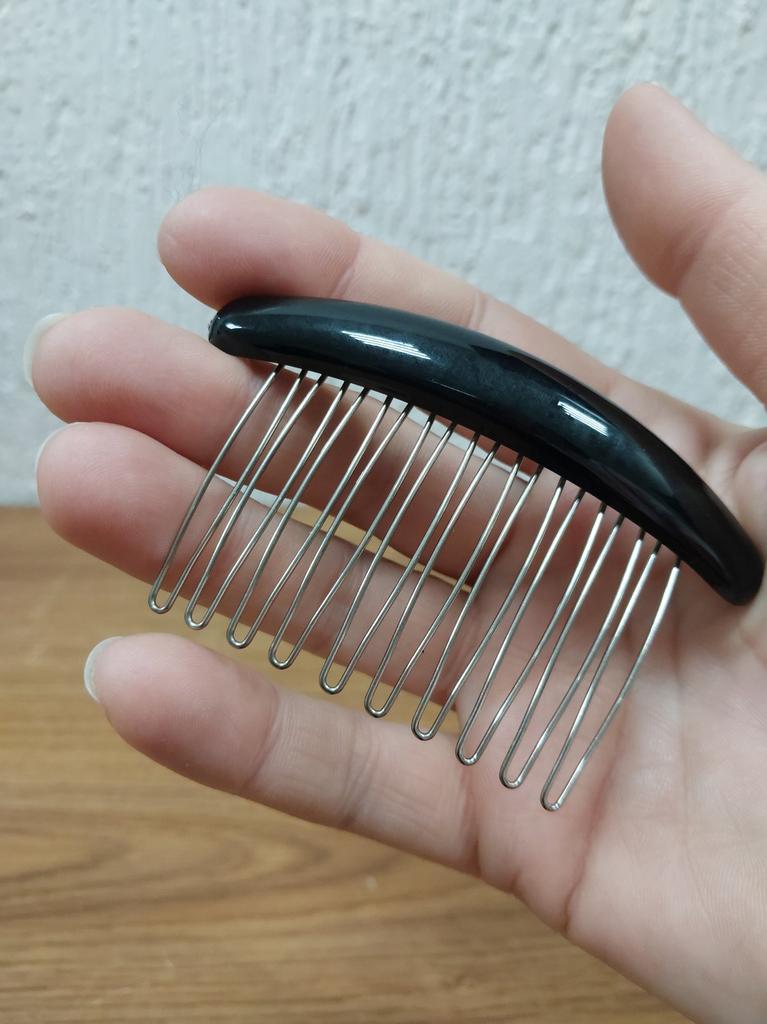Hair Comb: The Perfect Accessory for Your Look This comb is perfect for neatly tucking away flyaways, giving your look a finished look.. Additionally, the comb can be used to decorate a bun or simply comb your hair – it can easily handle any task. Made of durable plastic with stainless steel pins, it combines style and durability. The minimalist design makes it a versatile accessory that will look great with any outfit.. I recommend this product to anyone who appreciates quality and elegance in details!