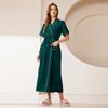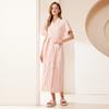 Women's Spring Summer Long Soft Terry Cloth Bathrobe Couples Short Sleeves Robe with Pockets V Neck Lace Up Sleepwear
