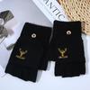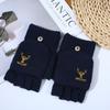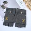 Winter Knitted Gloves Men's Half-finger Outdoor Cycling Plus Velvet Warm Embroidered Antlers Touch Screen Half-finger Flip Cover