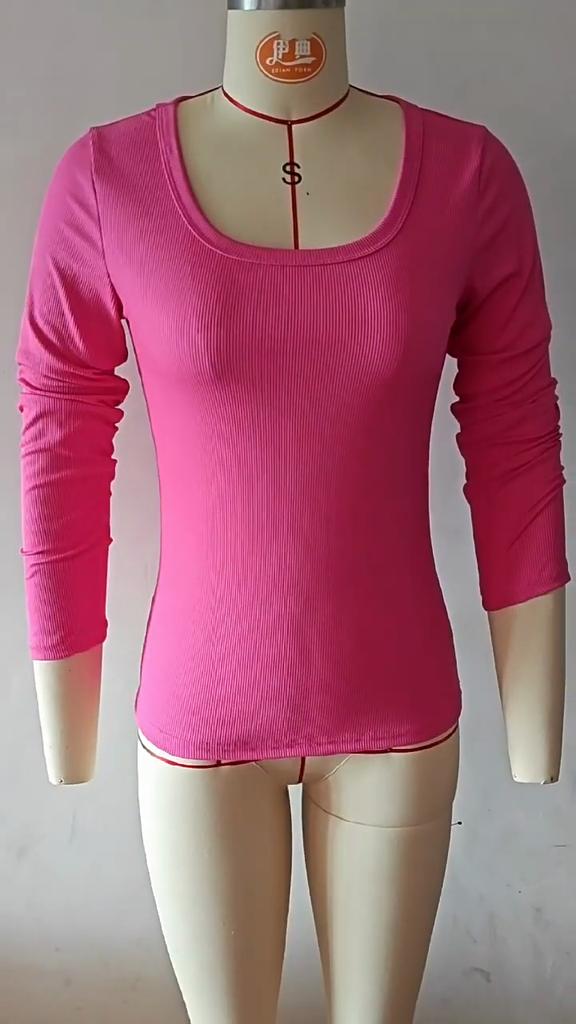 YYFS Women's Fashion Casual Spring Fall Solid Color Print Long Sleeve U-Neck Blouses & Shirts