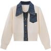 Korean Style Design Loose Sweater Women's Autumn Denim Patchwork Knitted Top Jacket