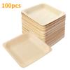 50/100pcs Square Disposable Wooden Plate and Spoon Party Plates Tableware for Wedding Restaurant Picnic Birthday 140x140mm