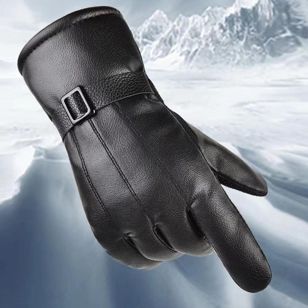 WTEMPO 1Pair Winter Warm Faux Leather Gloves Windproof Cold-proof Outdoor Cycling PU Gloves Men Fleece Touch Screen Thick Gloves