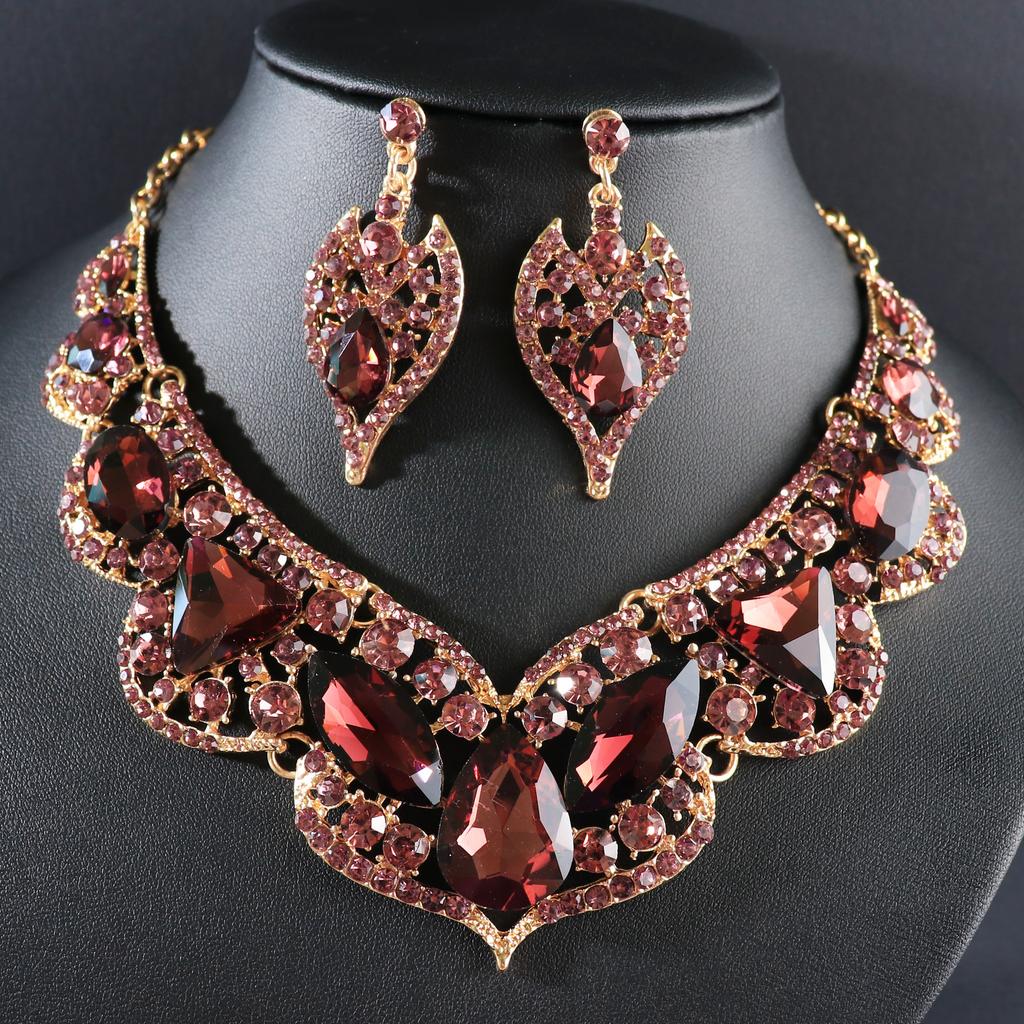 Set Of Necklace Earrings Set, Court Temperament Alloy Crystal Retro Necklace Set 2-Piece Set