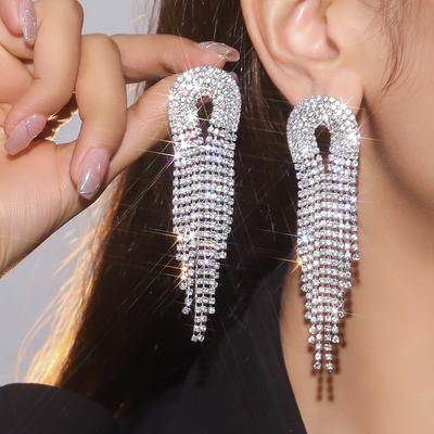 Premium Luxury Super Sparkle Rhinestone Long Tassel Earrings Women's Fashion Temperament Studded Earrings
