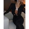 Fashion Sequin Lace-up Hollow Out Sexy Evening Dress Women Long Sleeve Mesh Splicing Party Dresses Women Elegant Slim Casual Black Long Dress 25750