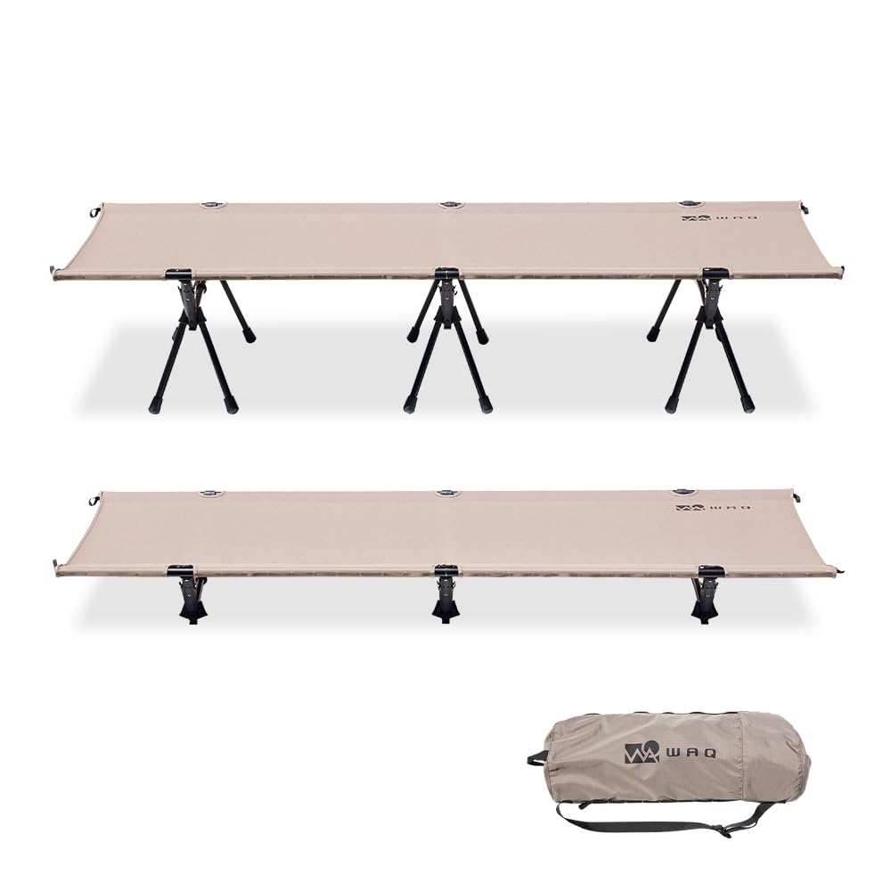 WAQ 2WAY Camping Cot Quiet Lightweight Folding Bed Load Capacity 150kg HighLow Switchable (Beige Gray) - 600D Sheet