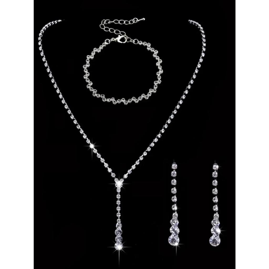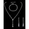 4-piece Women's Sparkling Wedding Set, Rhinestone Bracelet Necklace, Earrings, Party and Banquet Accessories