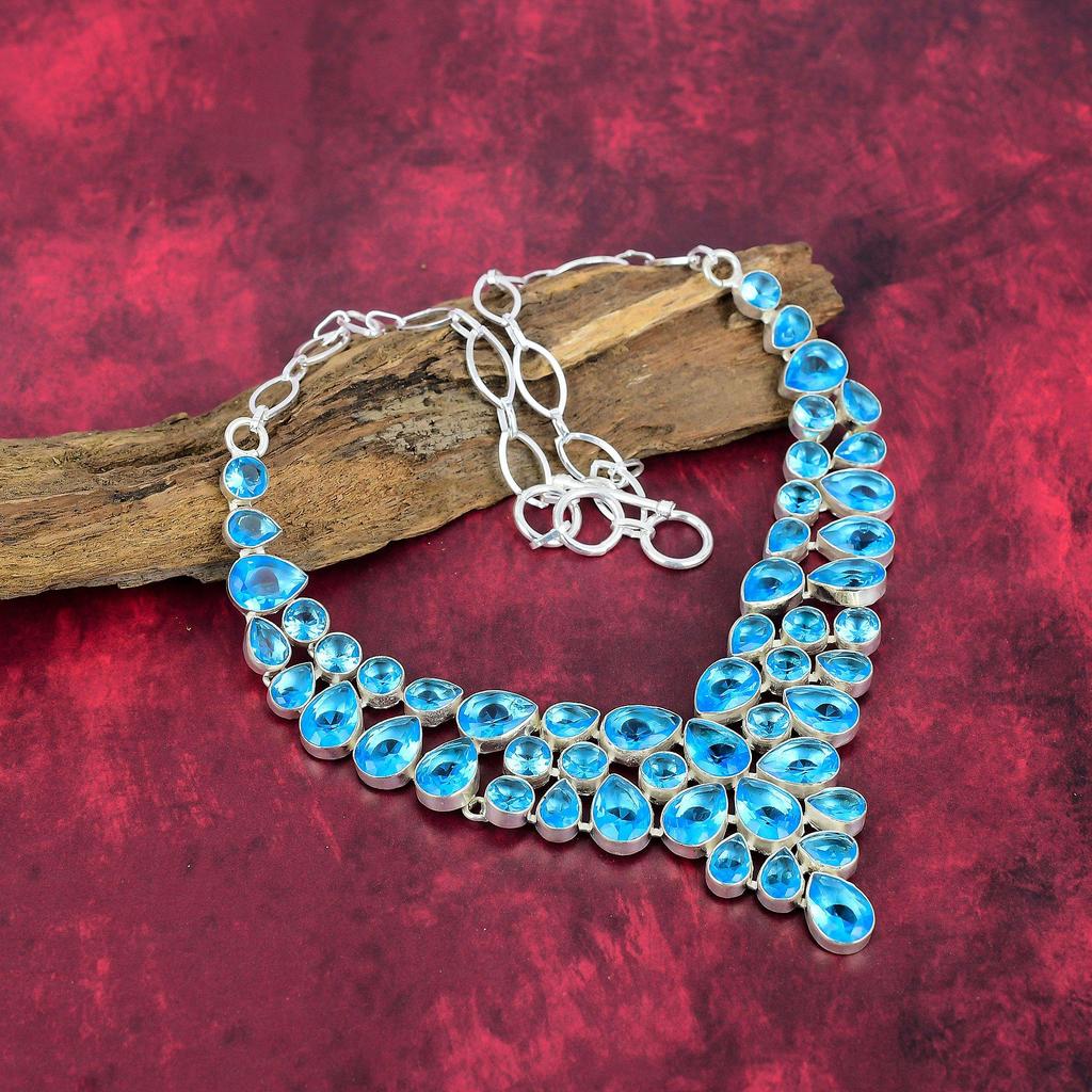 Blue Topaz 925 Solid Sterling Silver Necklace with Adjustable Chain, Handmade Gemstone Jewelry Necklace For Memorial Day