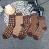 5 Pairs Socks Women's Medium Tube Socks Autumn and Winter Double Needles Ins Trendy Versatile Pure Cotton Retro Cute Green Stockings Stacking Socks
