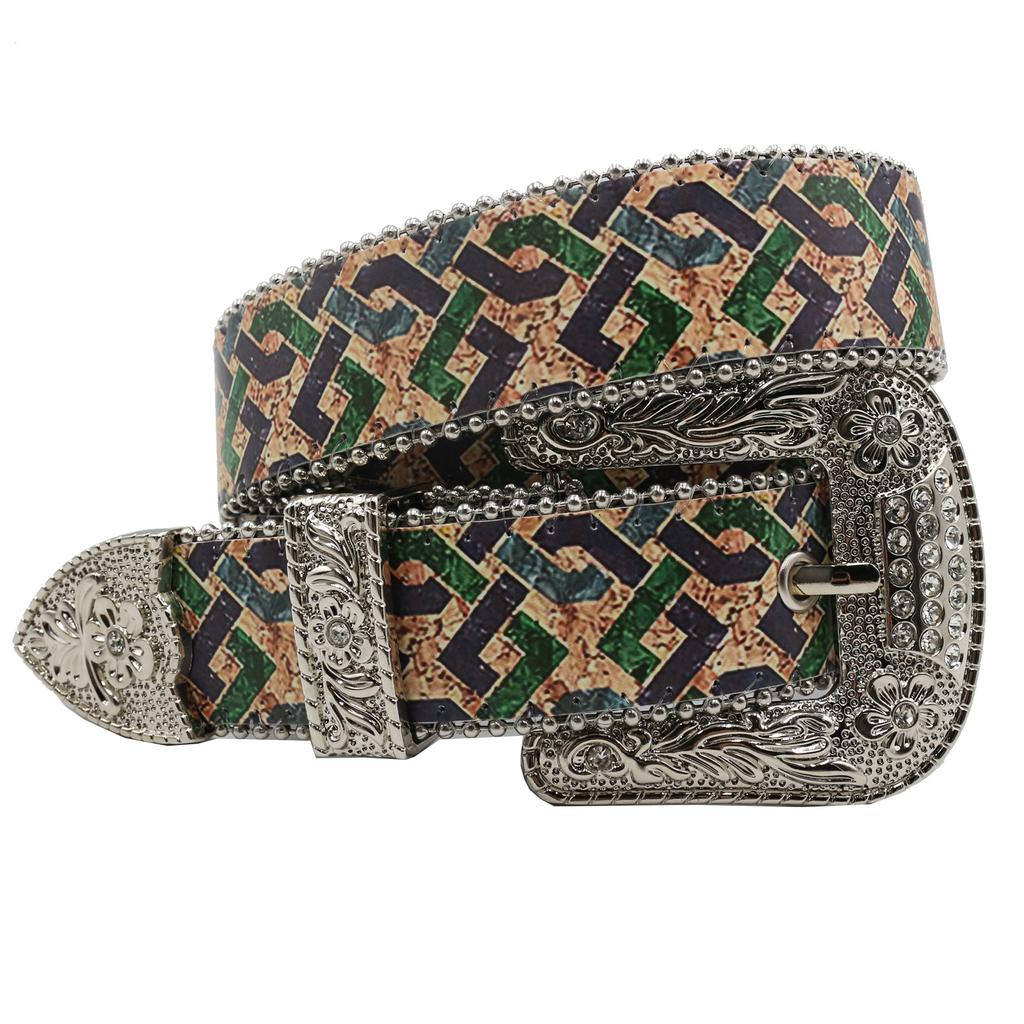Men'S Trend Original Design Rhinestone Printed Belt Women'S Fashion Personality Pu Leather Belt