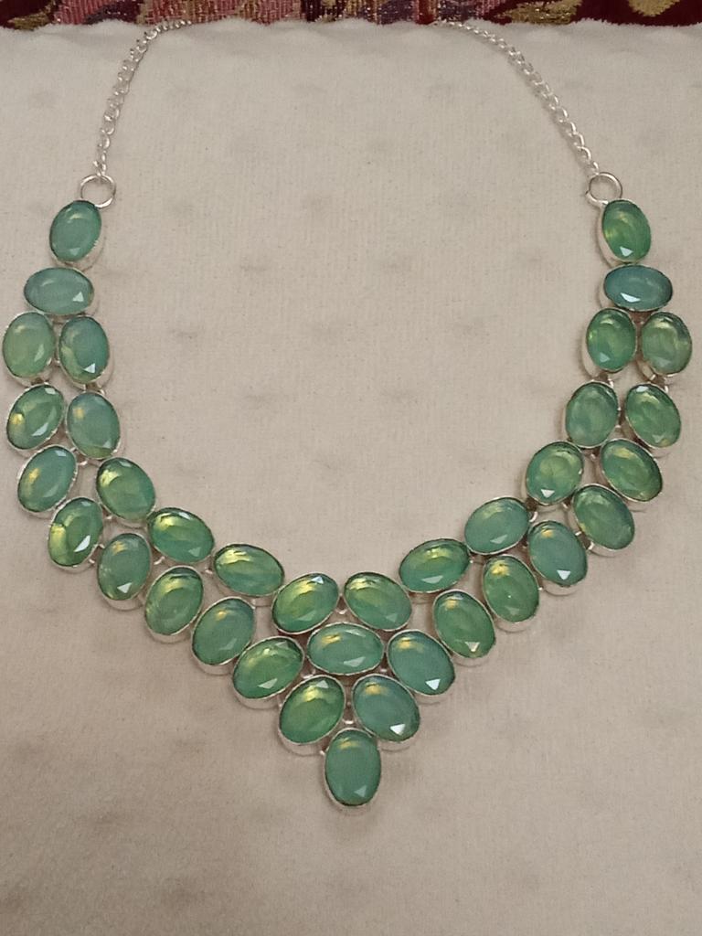 Faceted Green Opal 925 Solid Sterling Silver Necklace with Adjustable Chain, Handmade Gemstone Jewelry Necklace For Memorial Day