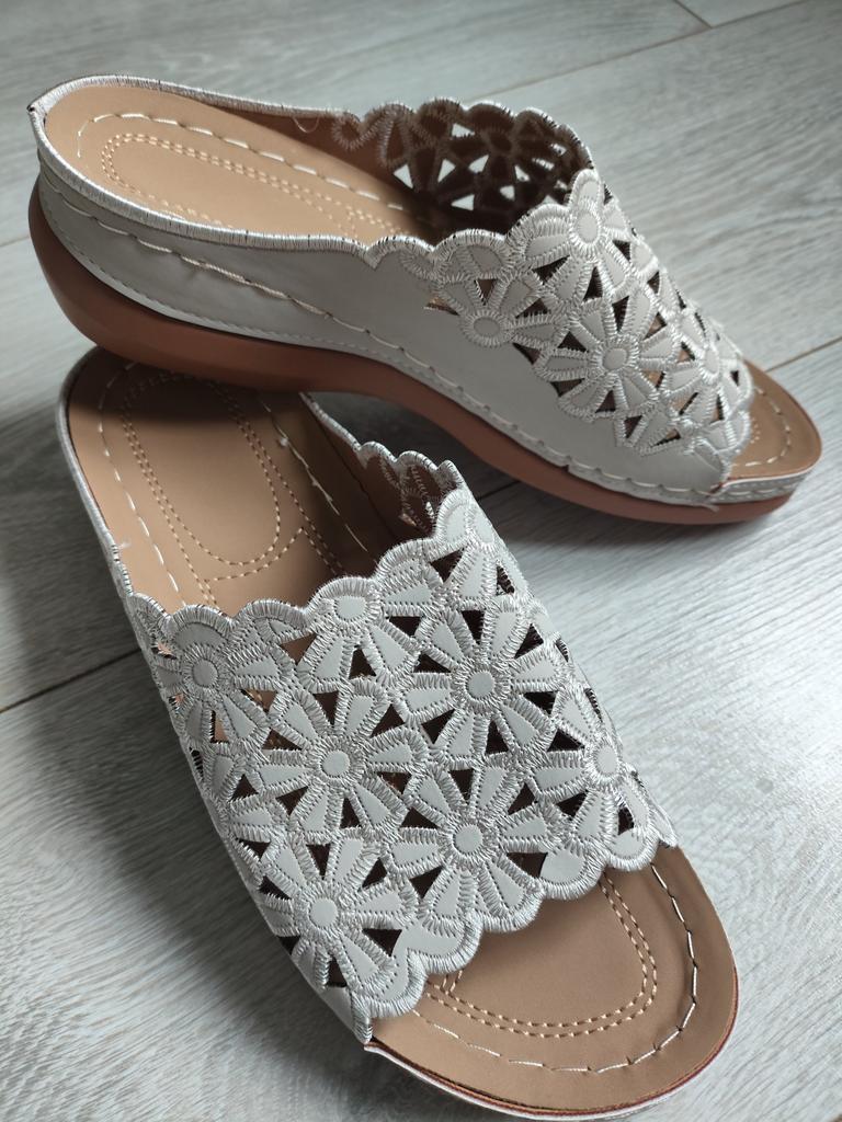 Ladies' Floral Design Comfortable Sandals, Hollow Thick Soled Walking Shoes, Fashionable Wedge Heel Slippers