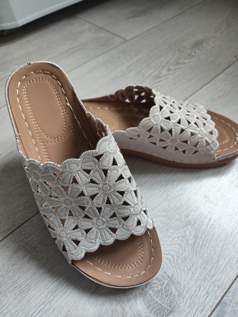 Beautiful, comfortable flip-flops.👍Very lightweight, fit size 40, took size 43 for a medium-wide foot. I bought them for home, as they have a small heel, comfortable to walk in for a long time. I recommend for purchase.