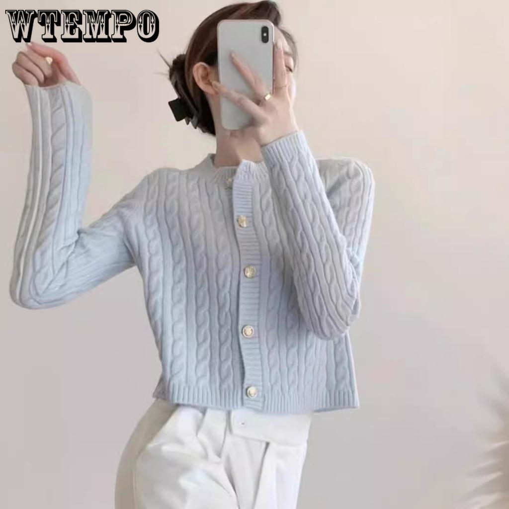 Fried Dough Twists Women's Knitted Cardigan Spring Versatile Korean Gentle Style Solid Color Slim Short Sweater Coat