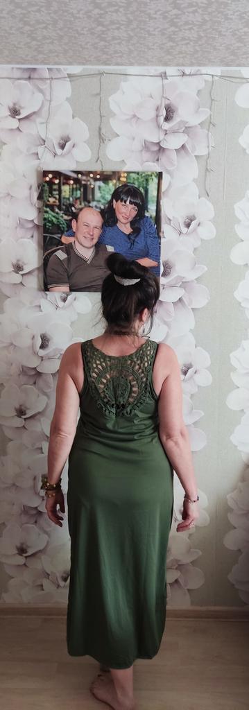The dress absolutely does not match the photo. The material is cotton like for a t-shirt, the decor on the back is very small. Overall the dress is nothing special, for wearing at home