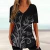 3D Printing Vintage T Shirt Women Summer V-Neck Pullover Short Sleeve Ladies Clothing Simple Black Women's T-Shirt Streetwear