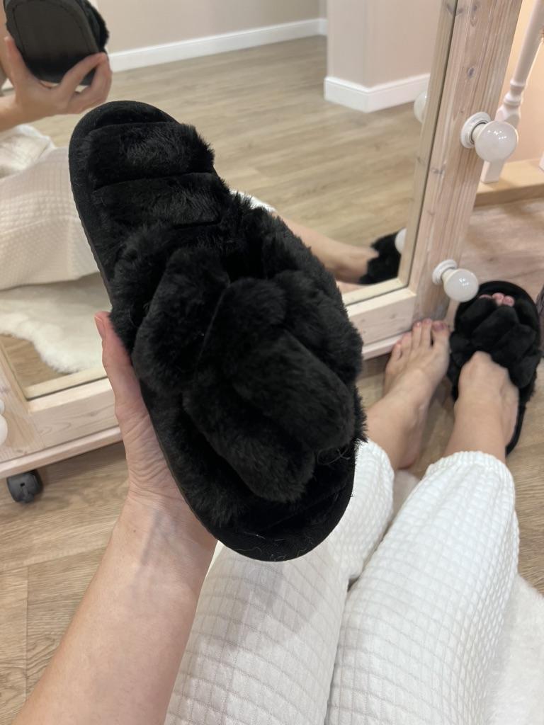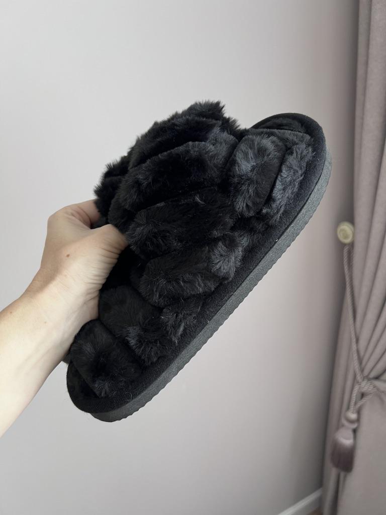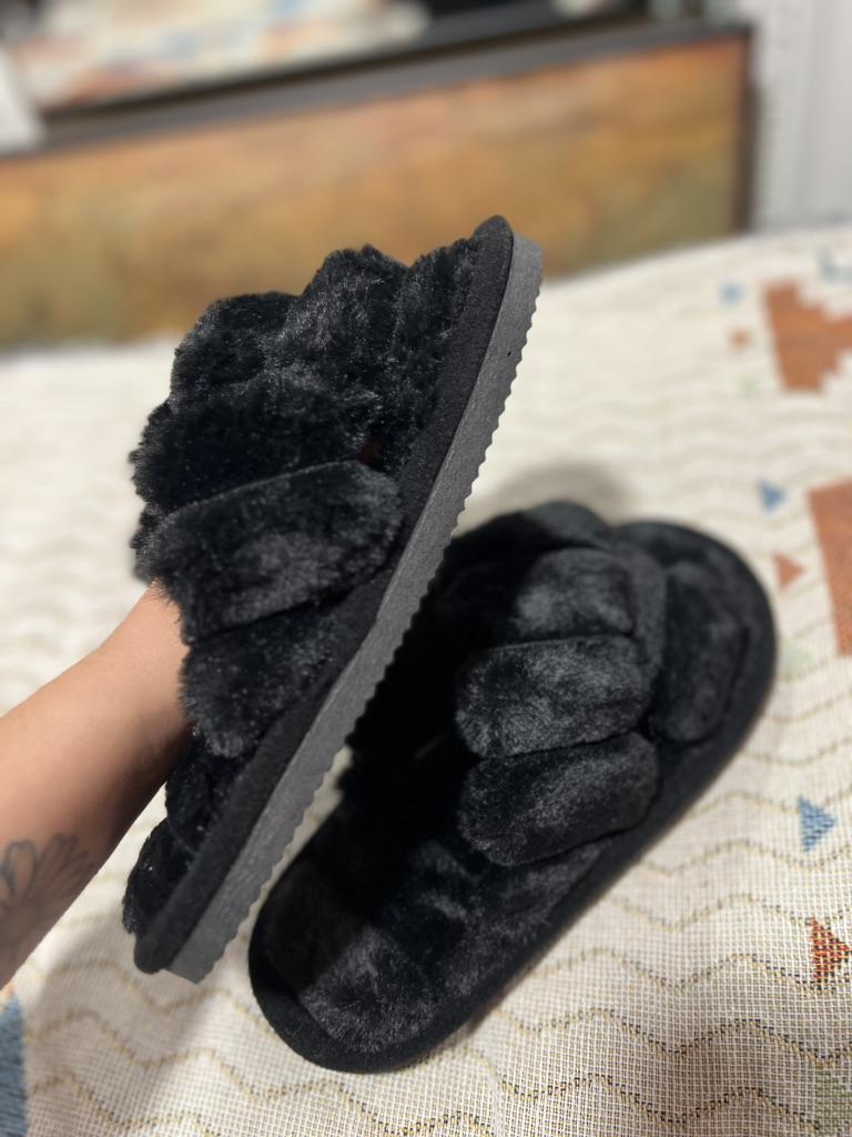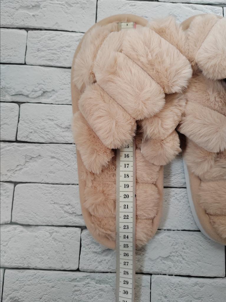 Very comfortable slippers with faux fur,on very wide feet.Size 40-41 was super wide,like foot is falling out of the slippers,otherwise very cozy. Delivery took 4 weeks to Ireland.Happy Shopping!