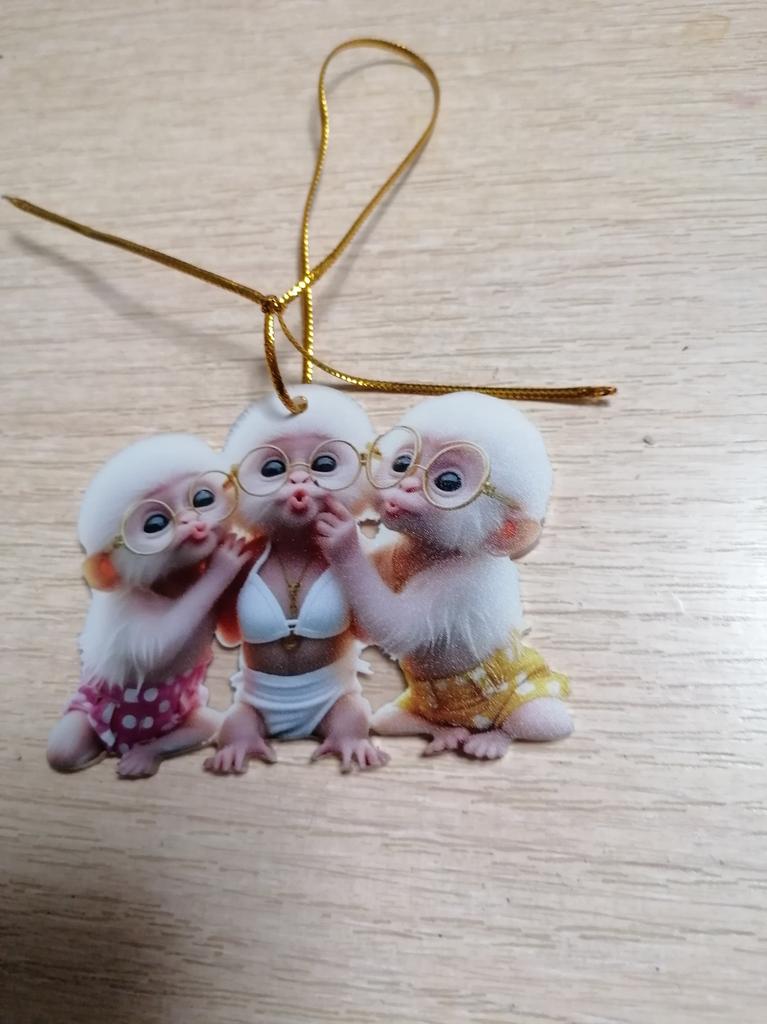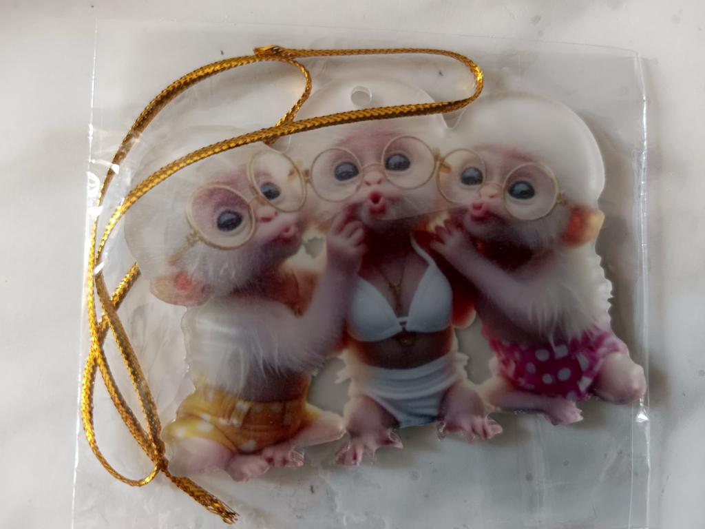 Acrylic Flat 2D Pendant for Three Cute Monkeys - Hanging Ornament for Thanksgiving Christmas Birthday - Tree Decoration, Backpack, Car, Keychain Gifts